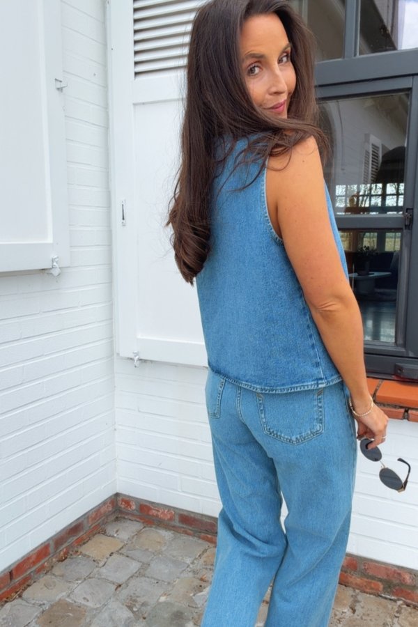 Bij deze jeans hebben we een bijhorende gilet top: 'VIDA KORI DENIM GILET'.