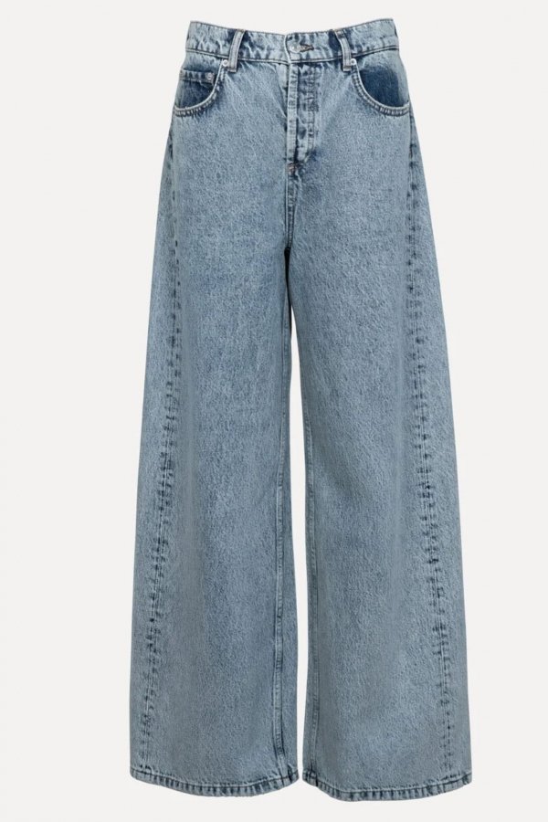 Tailleert: Extra wide fit. Los rond de dijen. Extra wijde, rechte pijpen.