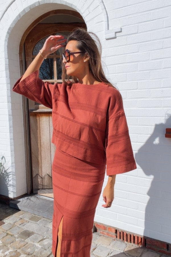 Deze blouse is enkel te koop in set met de bijhorende rok: 'NO 82 SKIRT'.